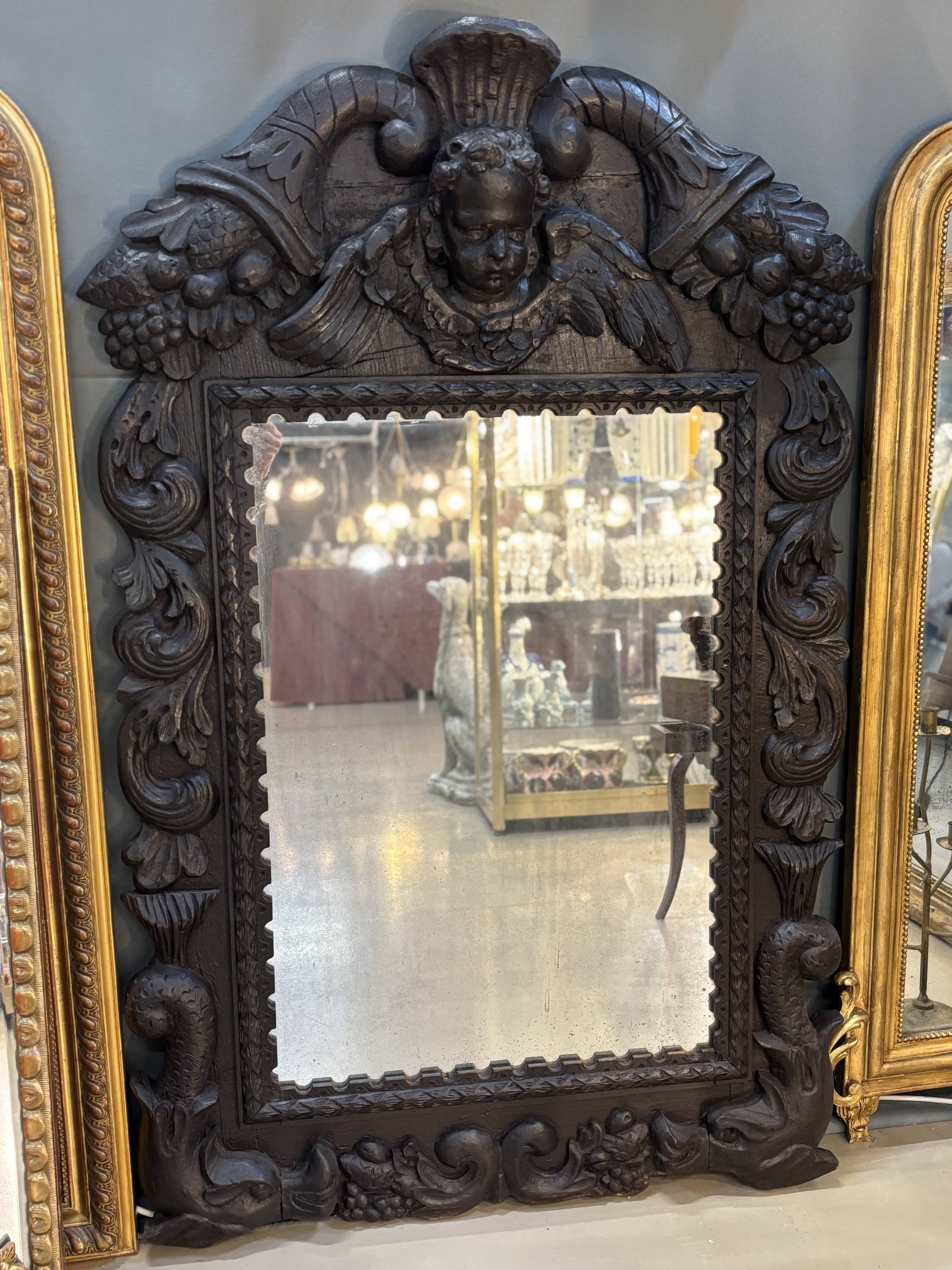 L'ensemble repose sur une large plate-bande lisse. La glace au mercure d'origine avec ses piqures atteste sans ambiguïté de l'ancienneté de la pièce.