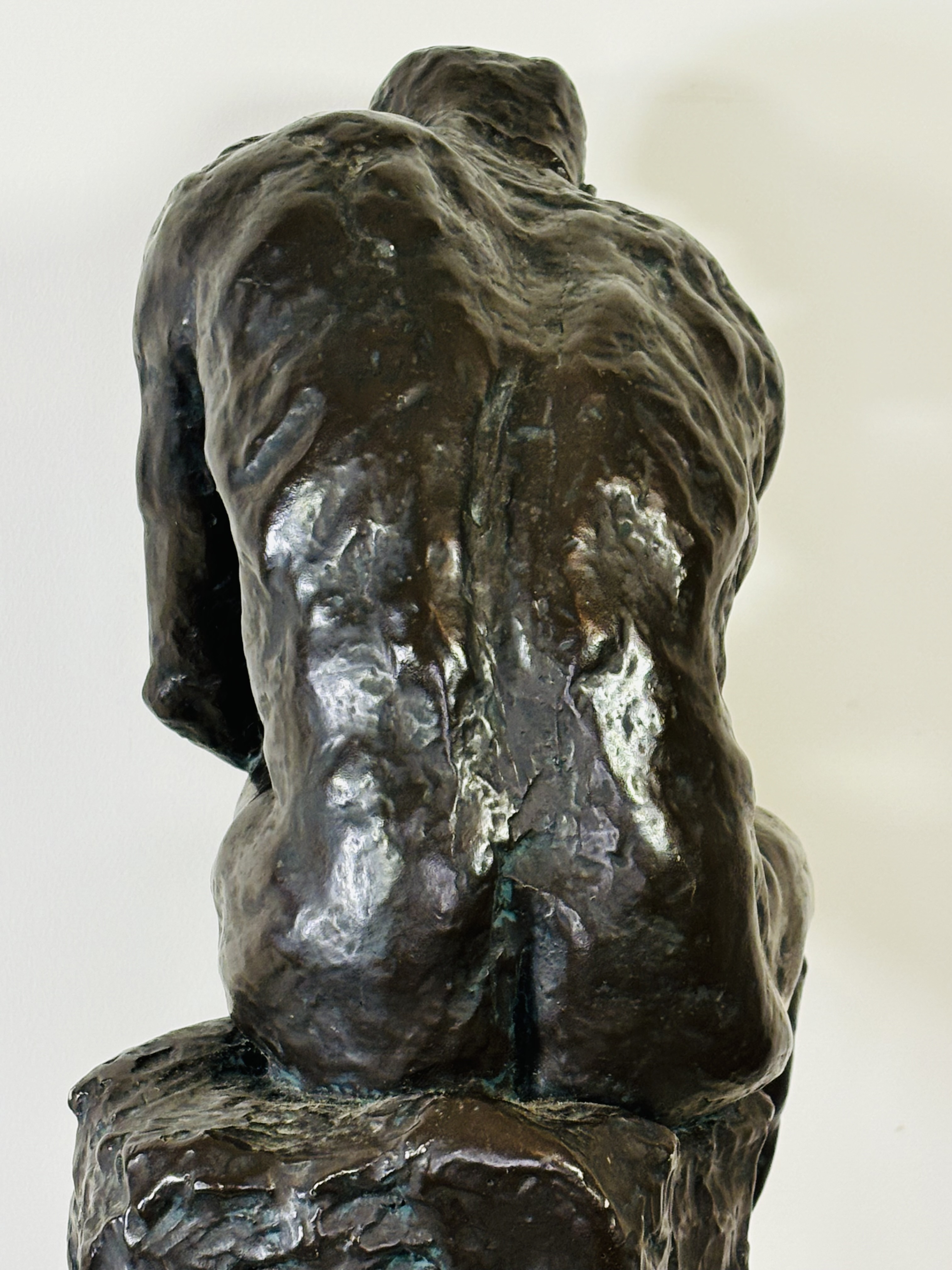 Bougeoir sculptural en bronze doré de Georges Mathias pour Fondica, caractéristique du travail organique et expressif de la seconde moitié du XXe siècle. La pièce se distingue par une composition verticale libre, évoquant une forme végétale ou coralienne stylisée. Le fût se déploie en excroissances successives aux lignes sinueuses et dynamiques, créant un jeu d'ombres et de reliefs particulièrement vibrant. La base tripode, largement épanouie, assure stabilité tout en prolongeant cette esthétique biomorphique. La dorure présente une profondeur et un éclat qui magnifient les aspérités du bronze. C'est une pièce de caractère, à la fois primitive et extrêmement raffinée.