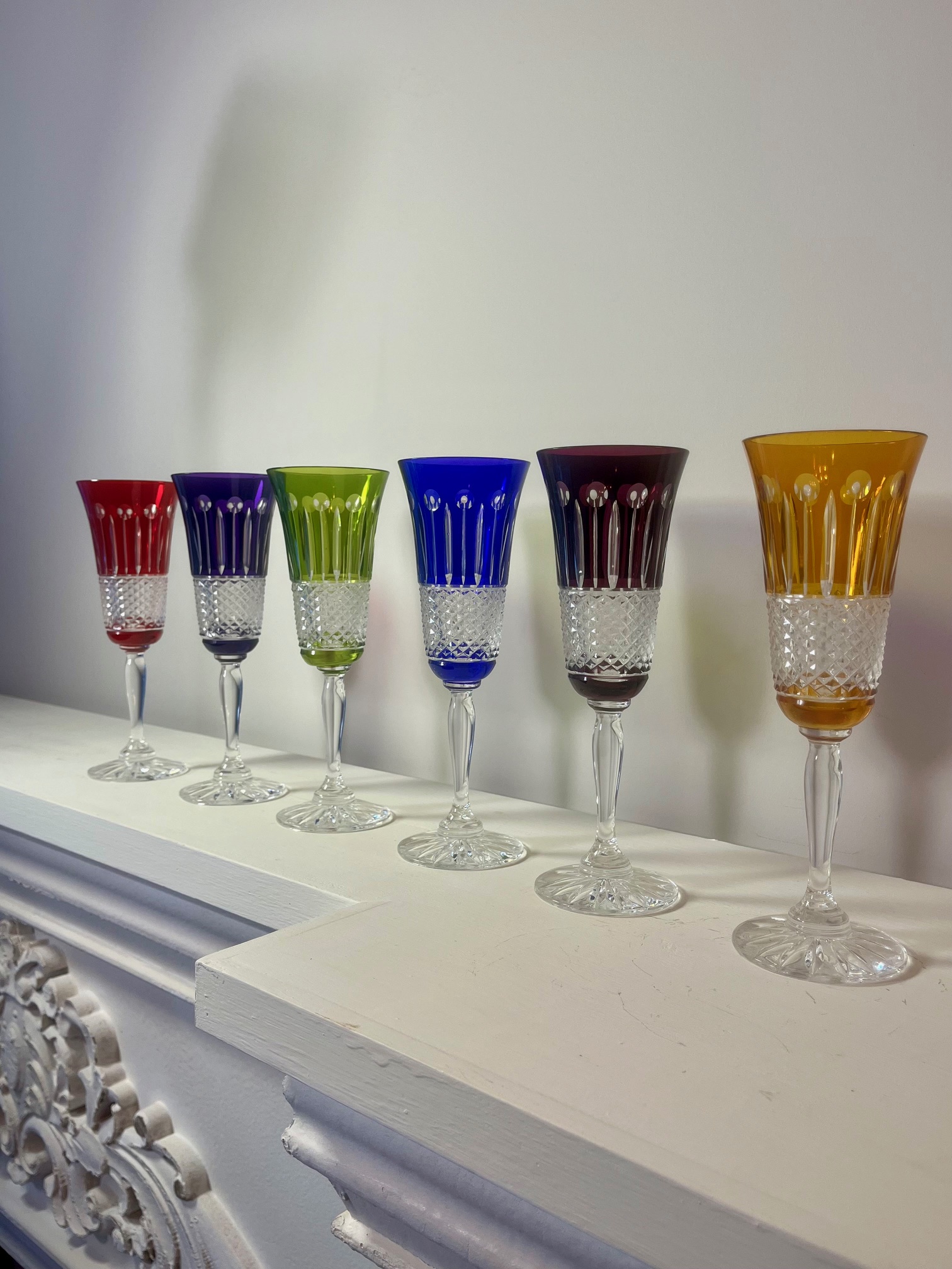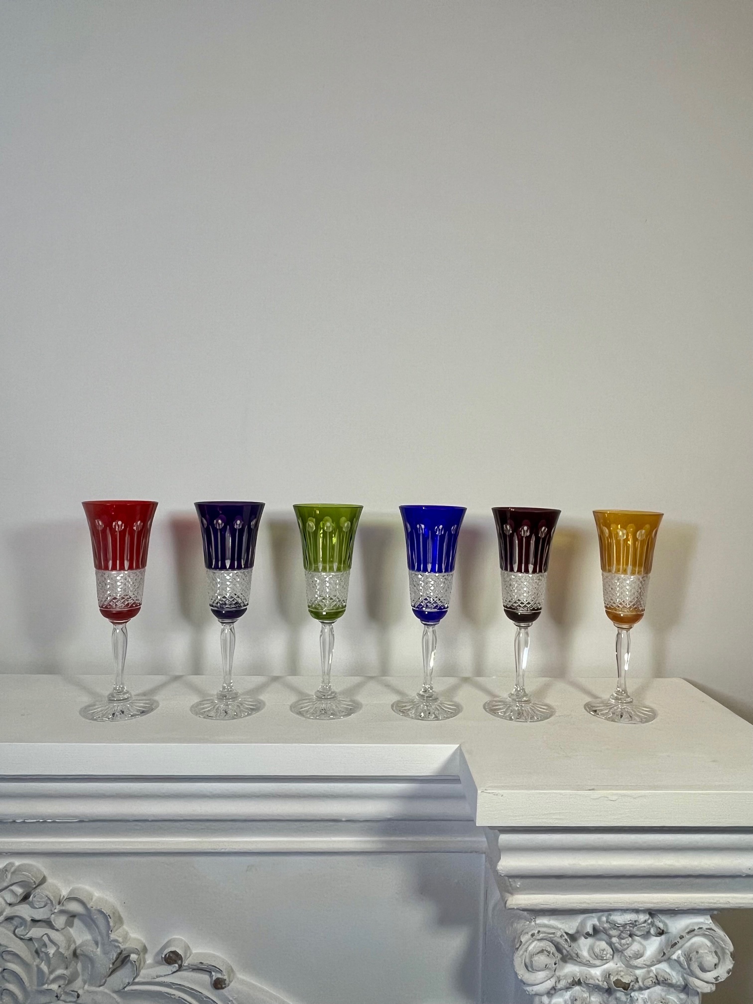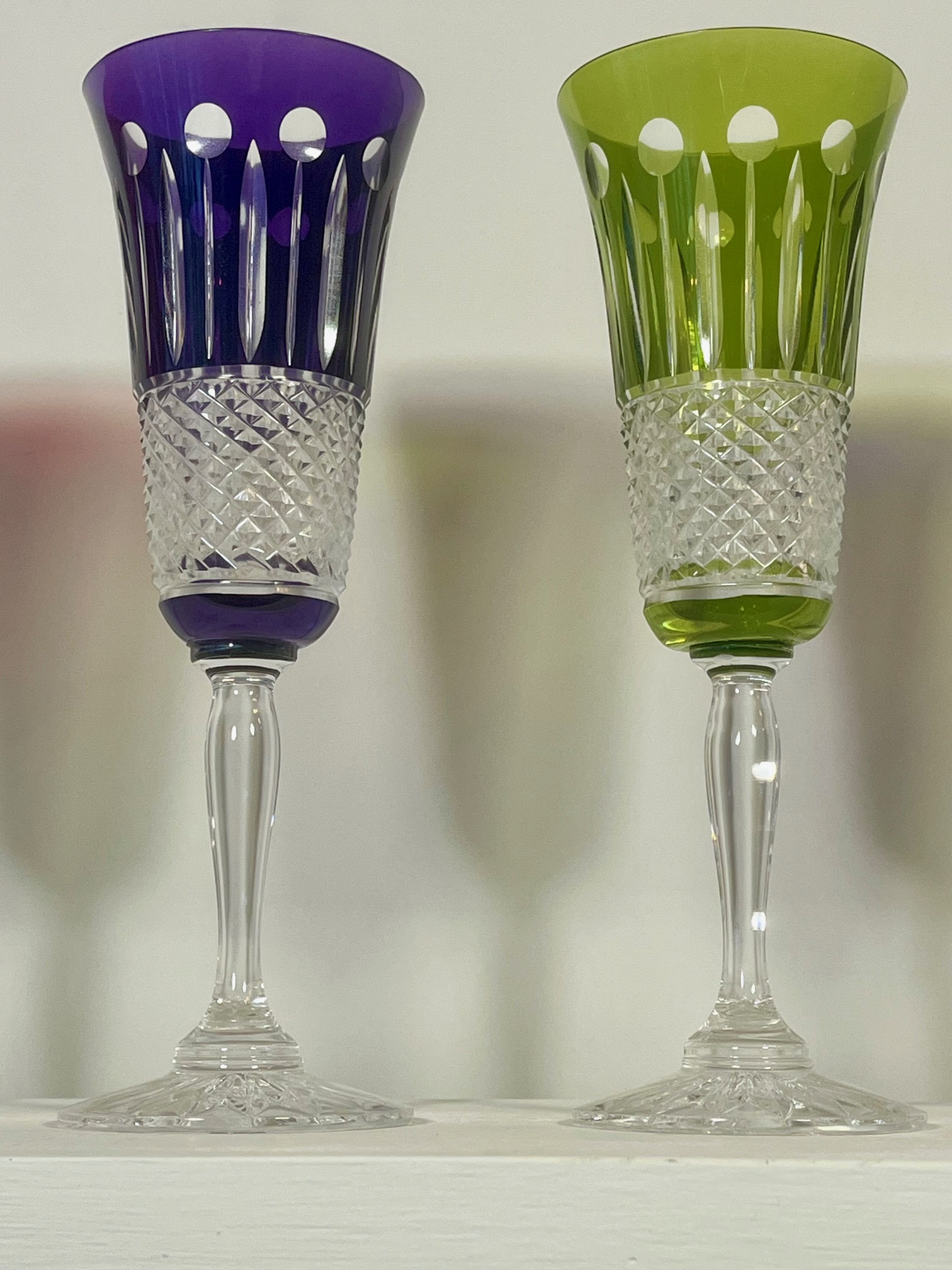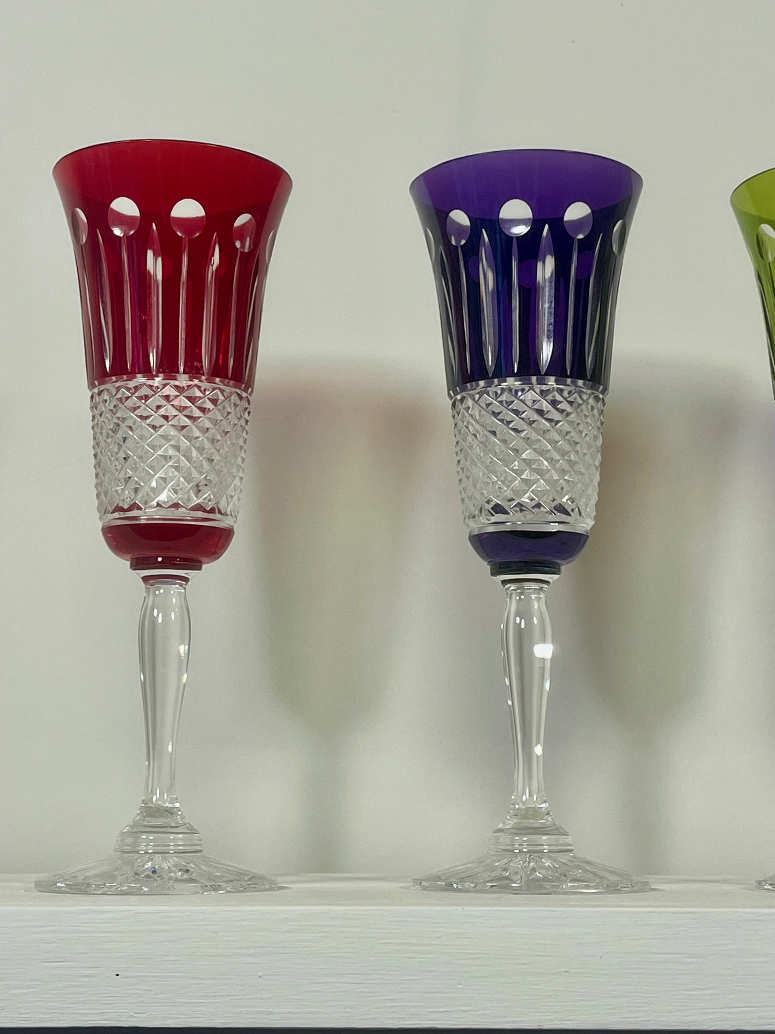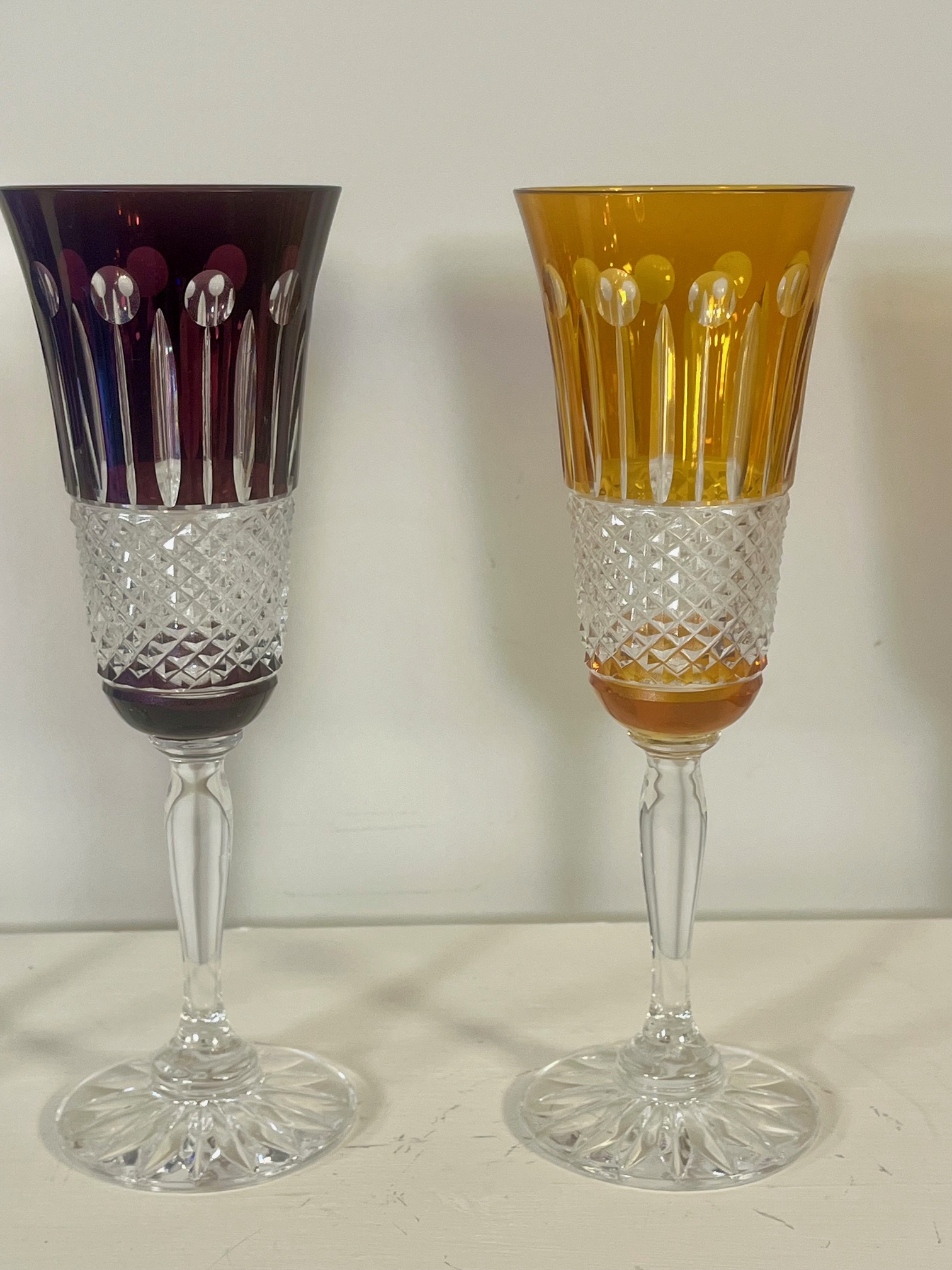 Flûtes à champagne en cristal soufflé coloré taillé