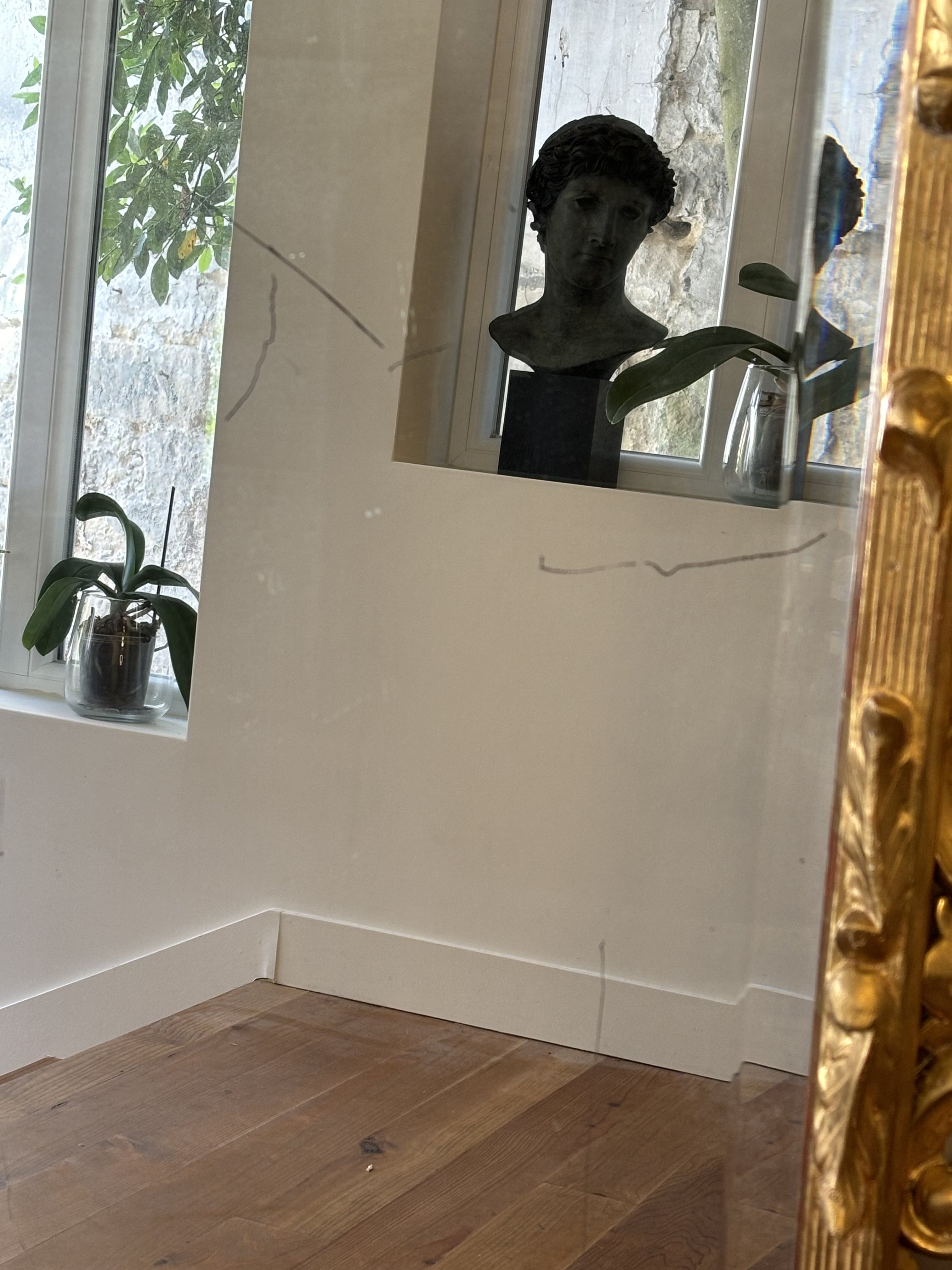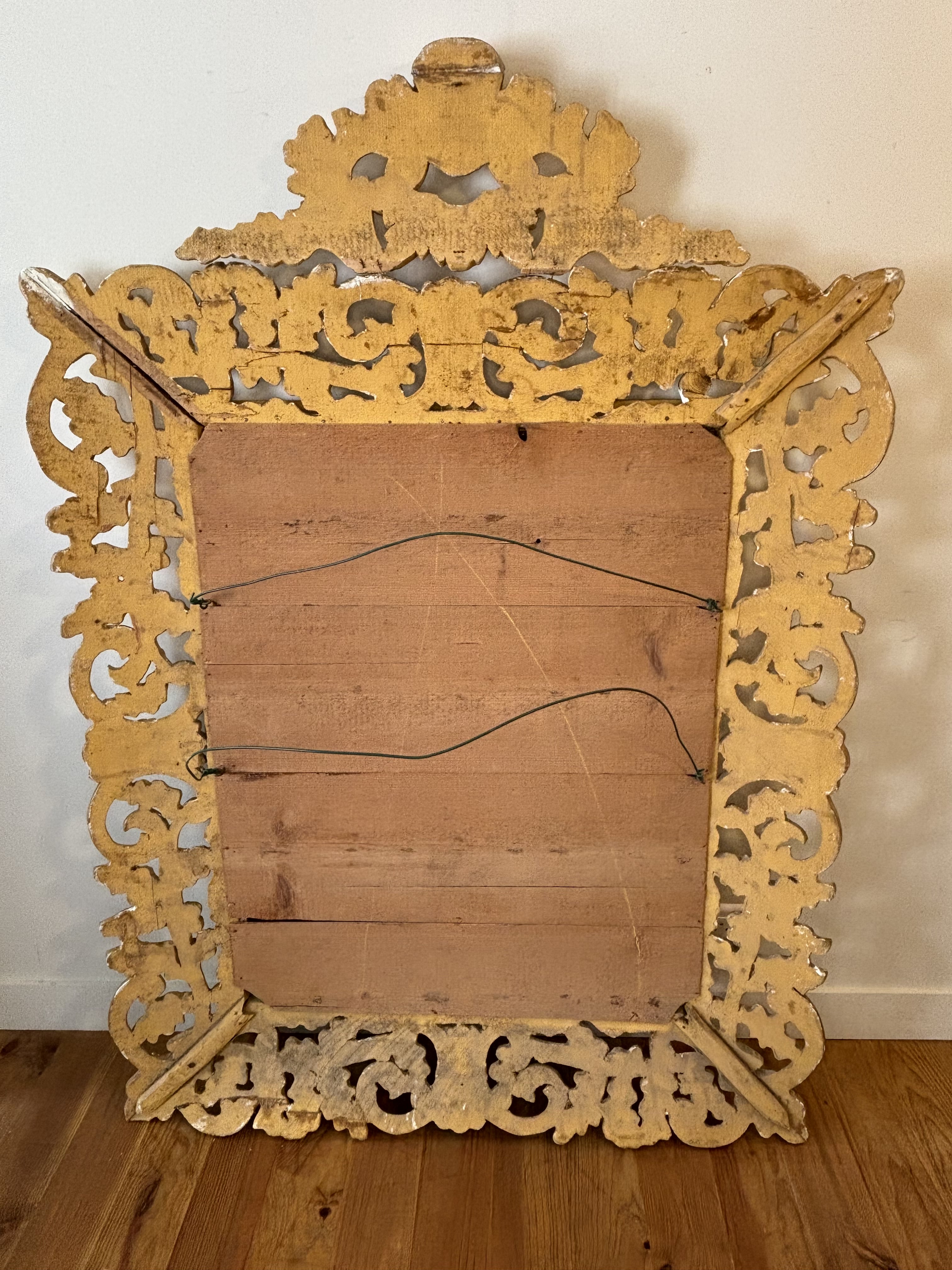 Miroir Italien 19e Siècle en bois sculpté doré, à Décor De Feuilles De Chêne