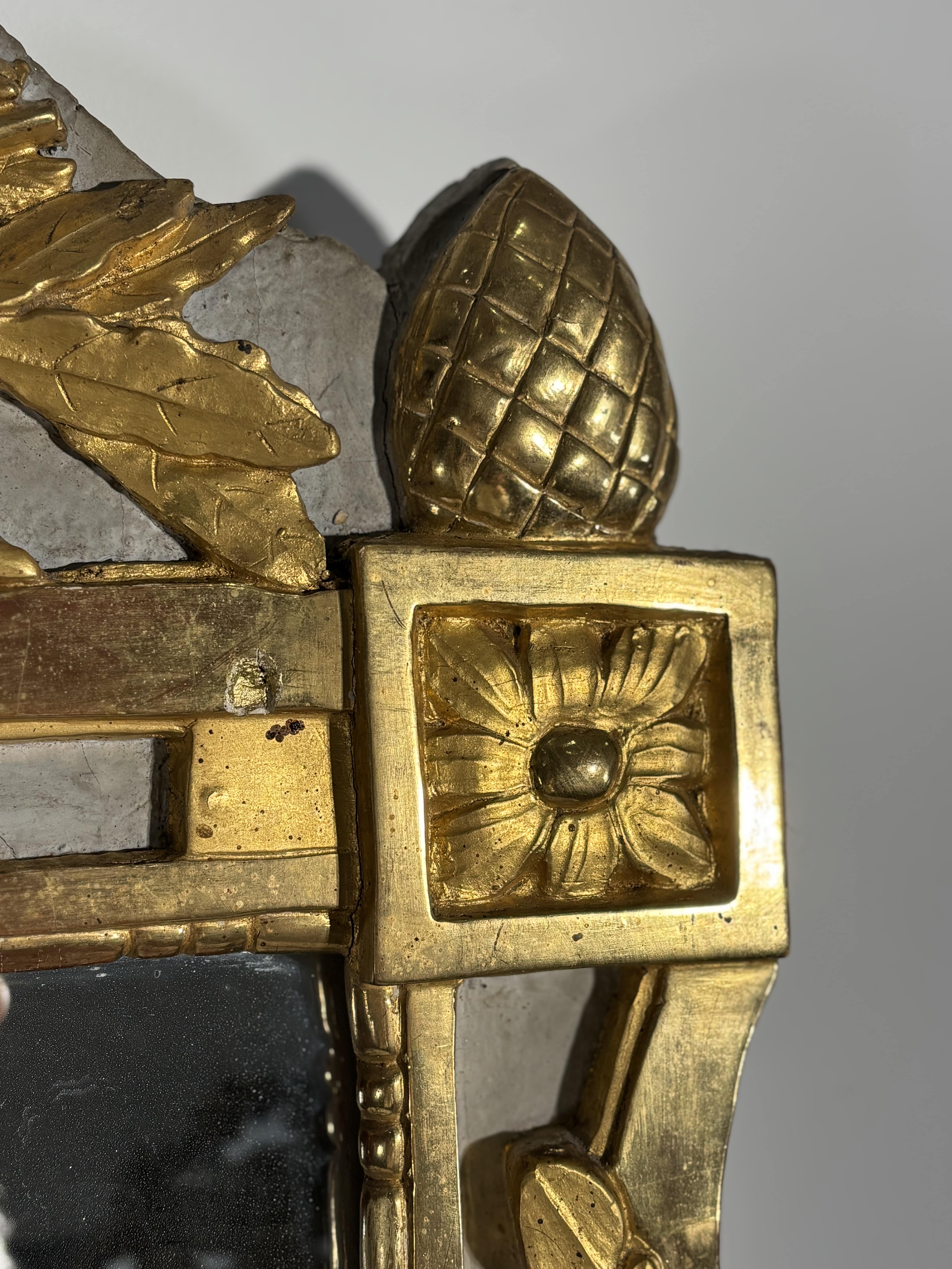 Miroir Louis XVI en bois sculpté et doré, rechampi, XVIIIe siècle