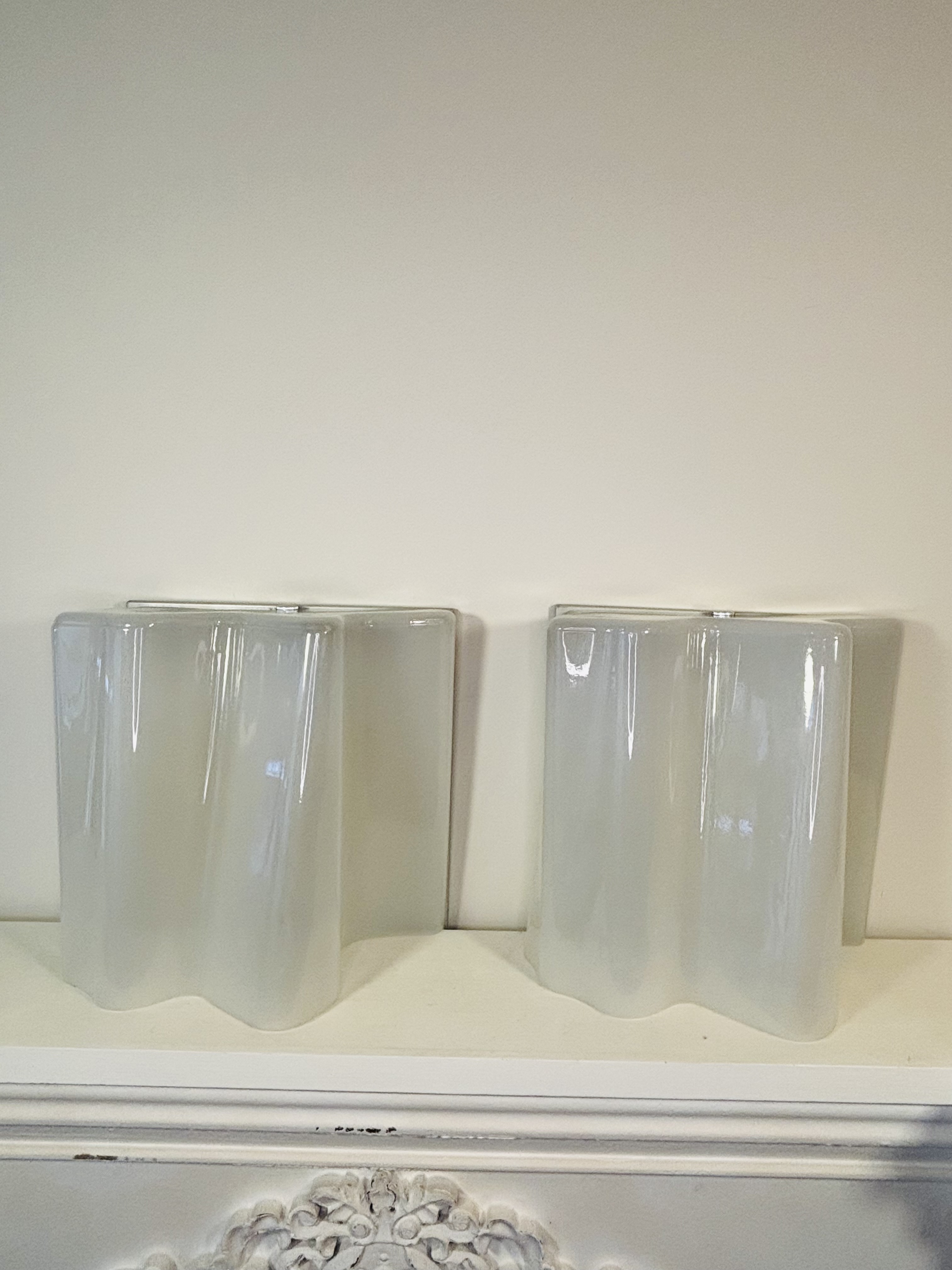 Magnifique paire d'appliques murales Artemide, modèle Logico. Designers Gehard Reichert et Michele de Lucchi. Chaque applique est numérotée et datée du 29/07/2009 Métal laqué et verre. Satiné. Très bon état. Une petite égrénure imperceptible sur la tranche arrière, contre le support métallique. Voir photo. En très bon état.