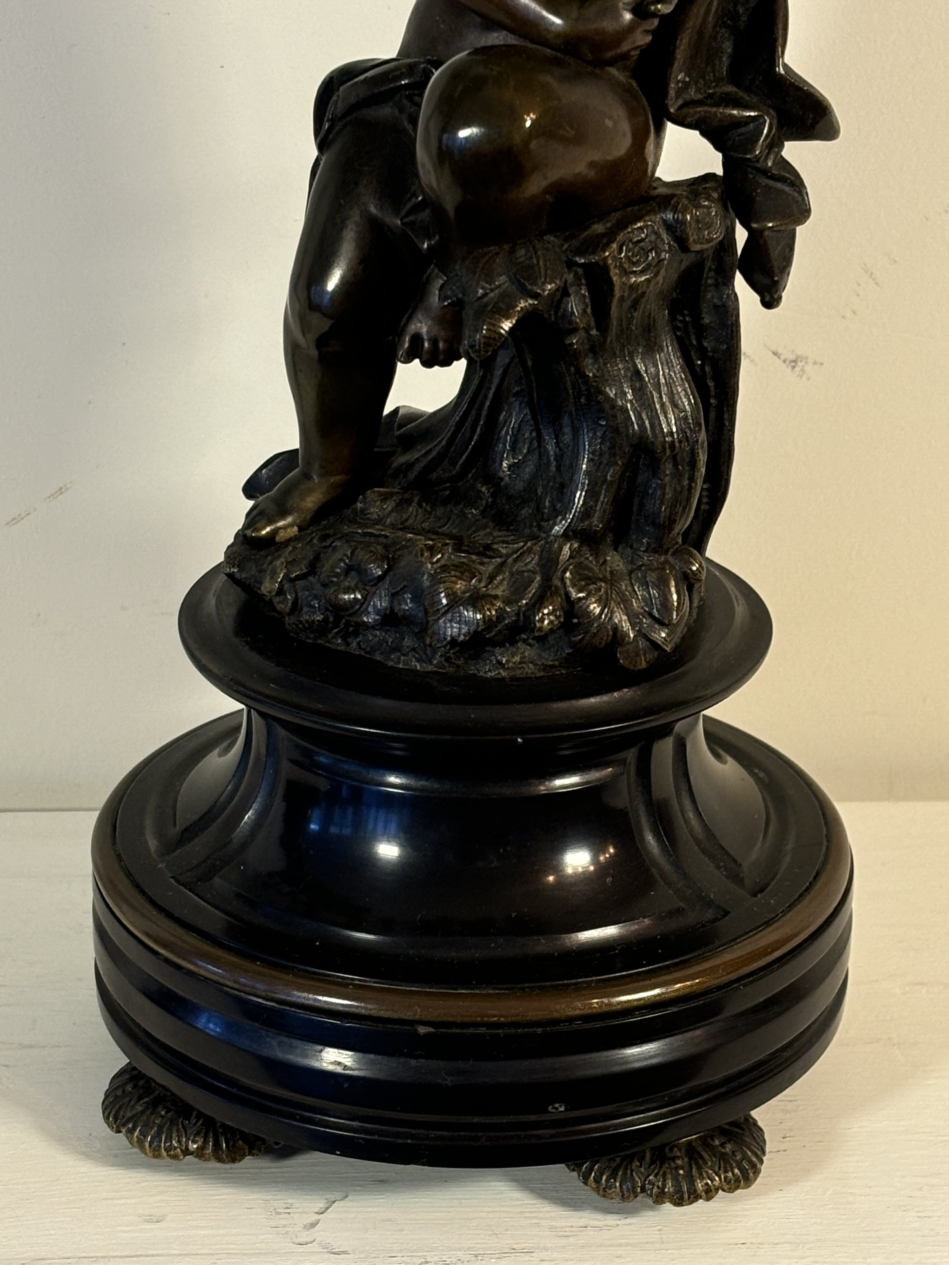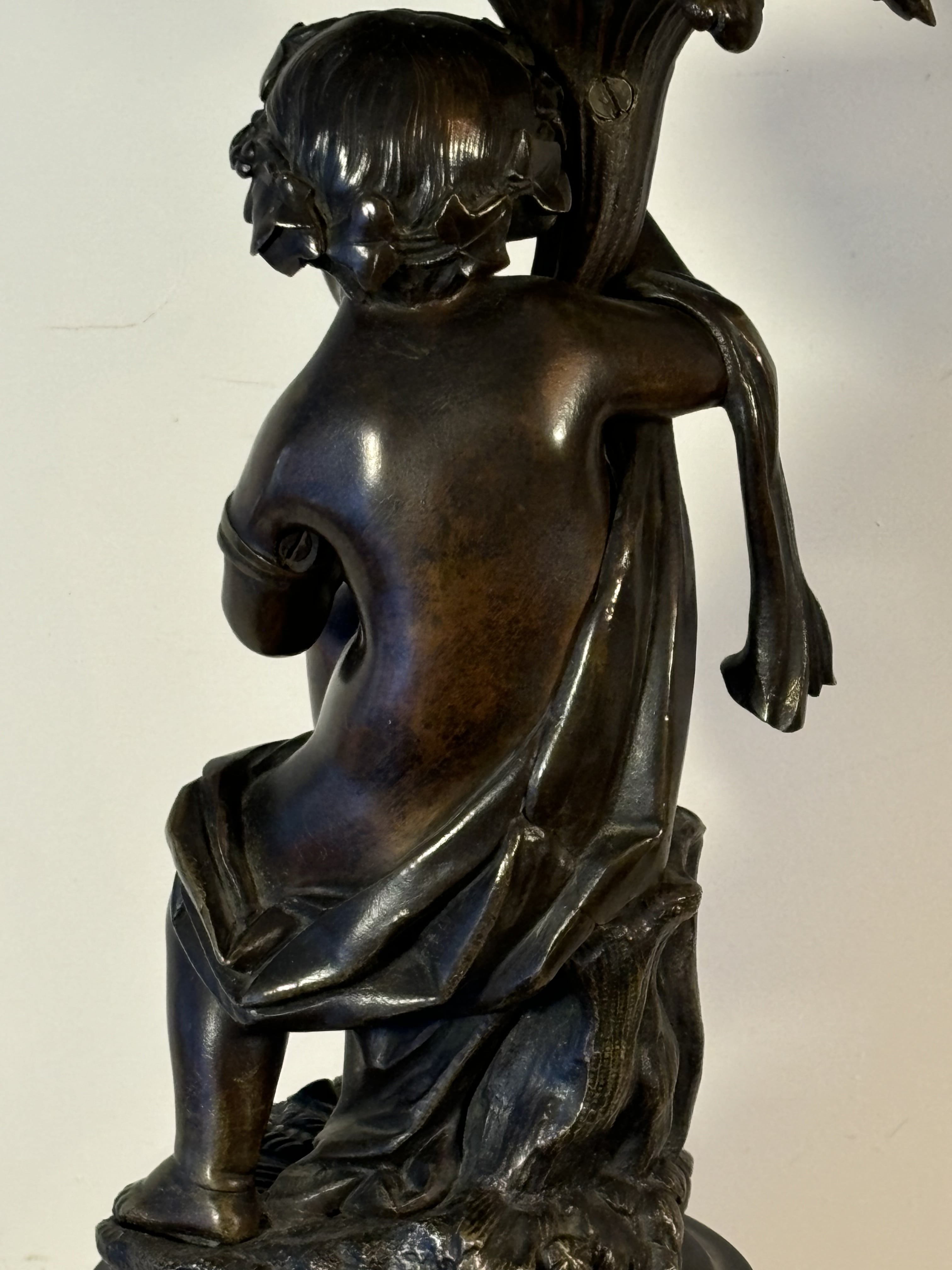 Paire De grands Candélabres à cinq lumière, En Bronze à Patine Brune, ornés de putti,19e Siècle