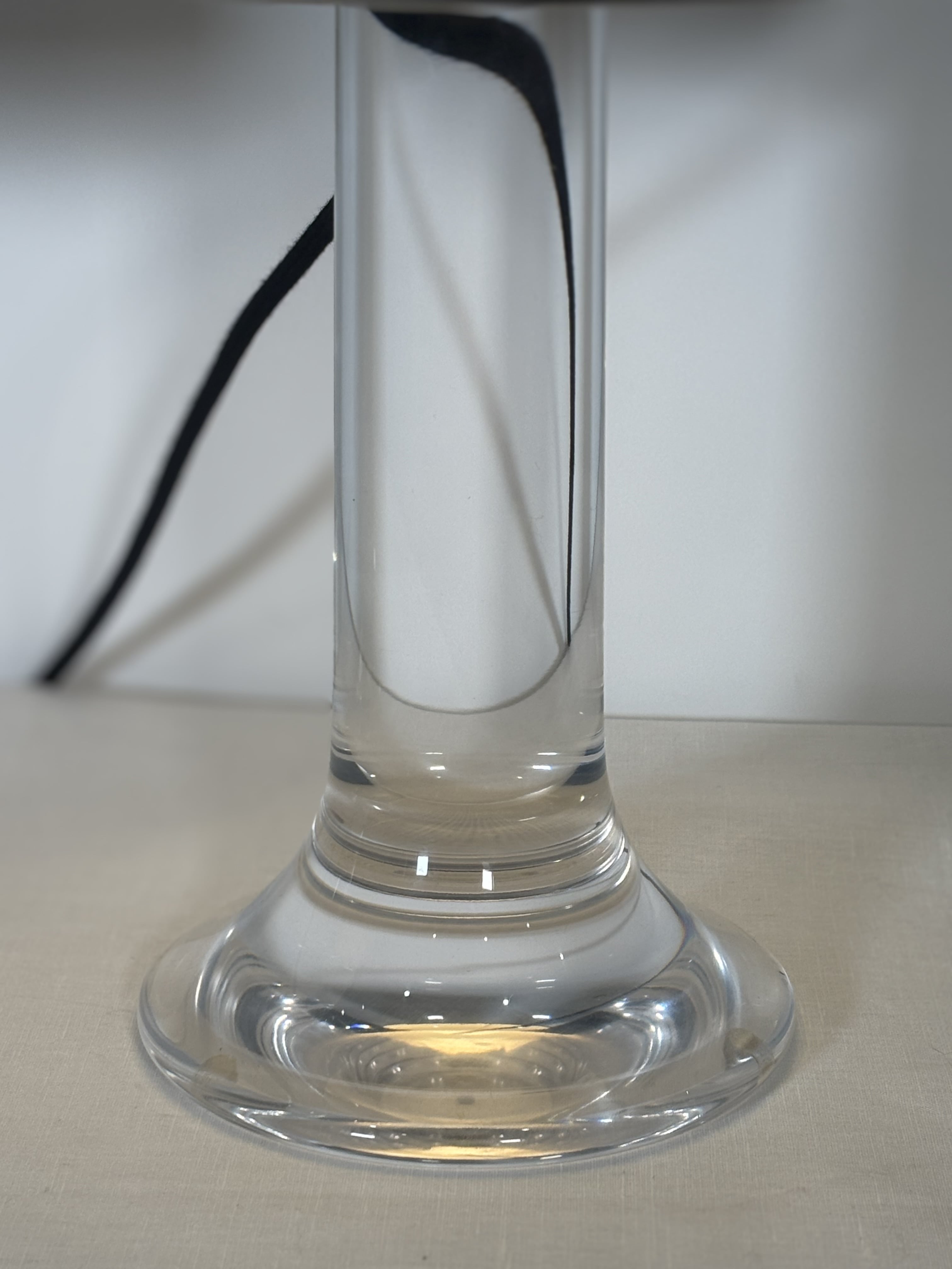 Elégante paire de lampes de table éditées par Harvey Guzzini, célèbre maison italienne de design des années 1960-1970. Leur silhouette emblématique associe un piètement tulipe en plexiglas transparent et un abat-jour cylindrique métallisé chromé à l'intérieur clair, offrant une lumière à la fois diffuse et chaleureuse. Véritable manifeste du design Space Age italien, ce modèle rare en paire incare parfaitement l'esthétique raffinée et futuriste de Harvey Guzzini. Il s'intègre aussi bien dans un décor contemporain que dans un intérieur vintage haut de gamme. Très bon état, infimes traces d'usage cohérentes avec l'âge. Electrification récemment aux normes UE.