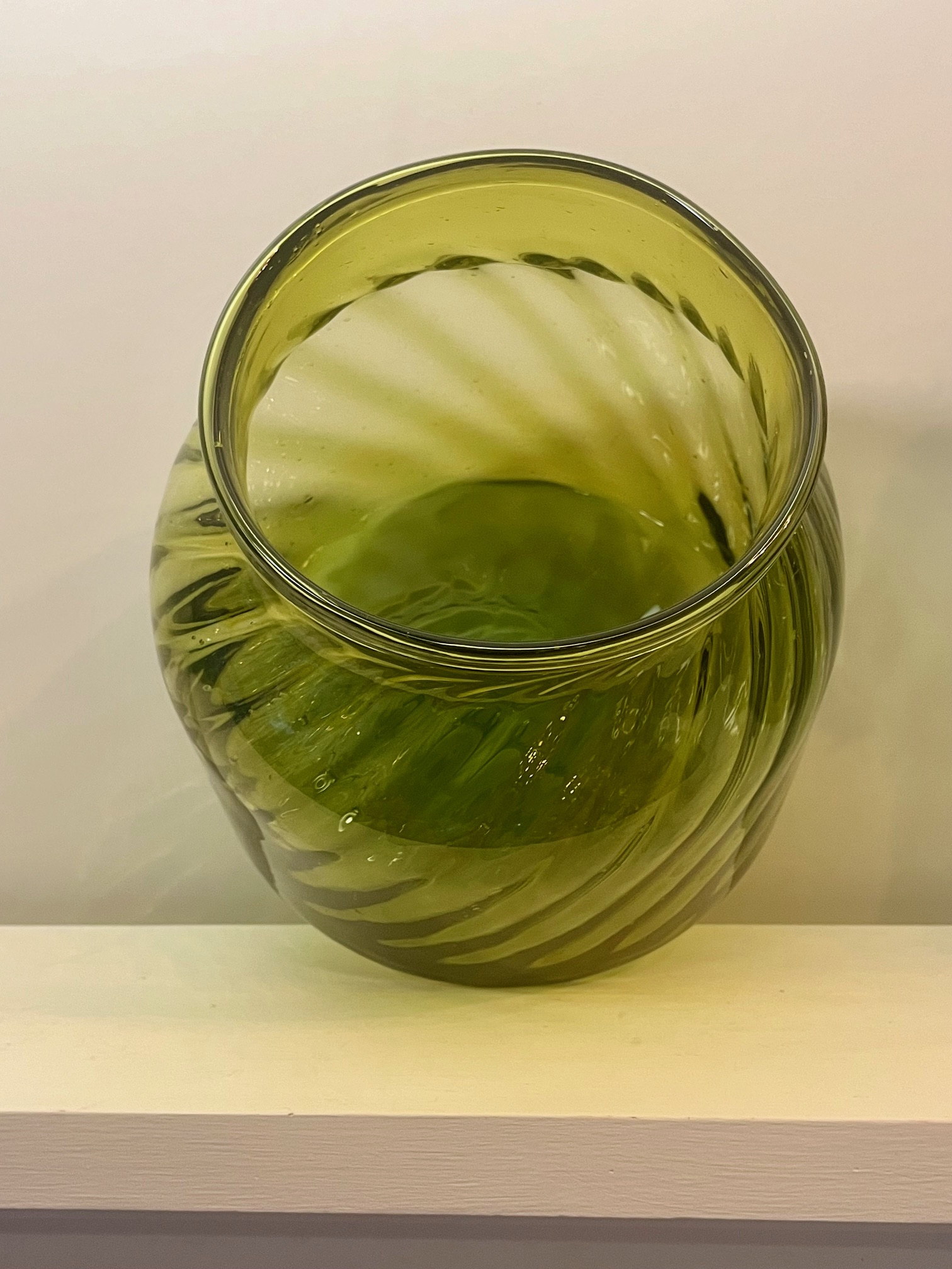 Elégante paire de vases vintage en verre qui arborent une teinte vert délicate, accentuée par des reliefs striés qui ajoutent une touche raffinée – Originaire de Transylvanie, ces pièces témoignent d’un beau savoir-faire artisanal. Parfait état.