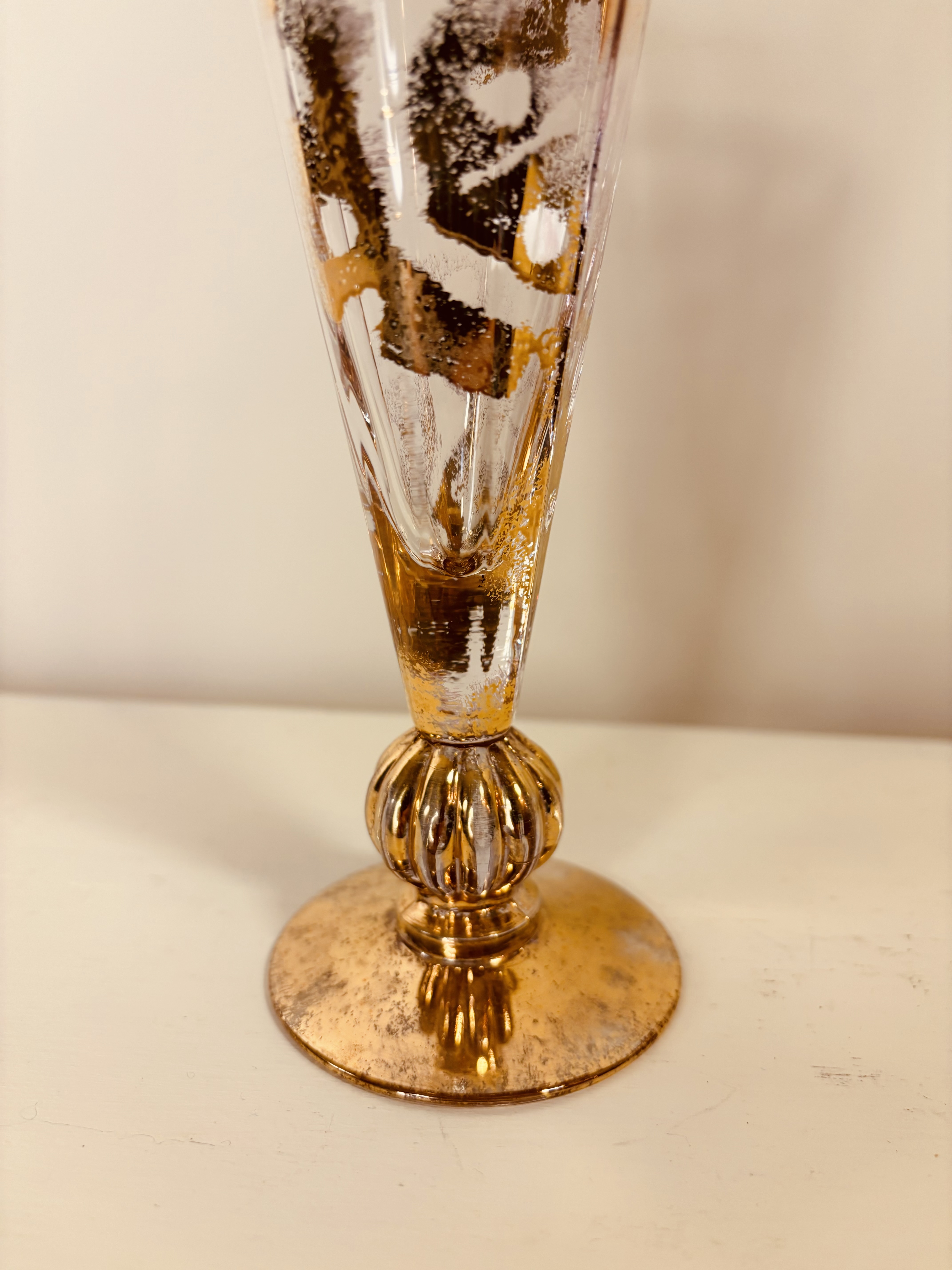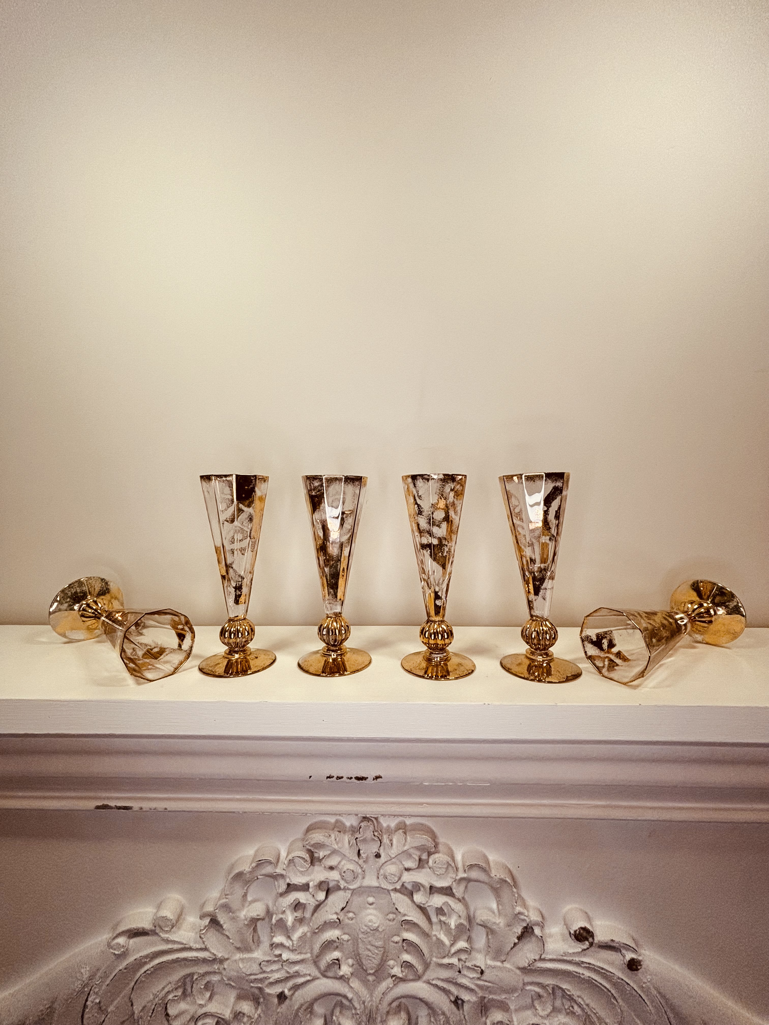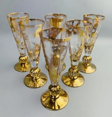 Suite de six flûtes à champagne en cristal doré signées VAN LITH