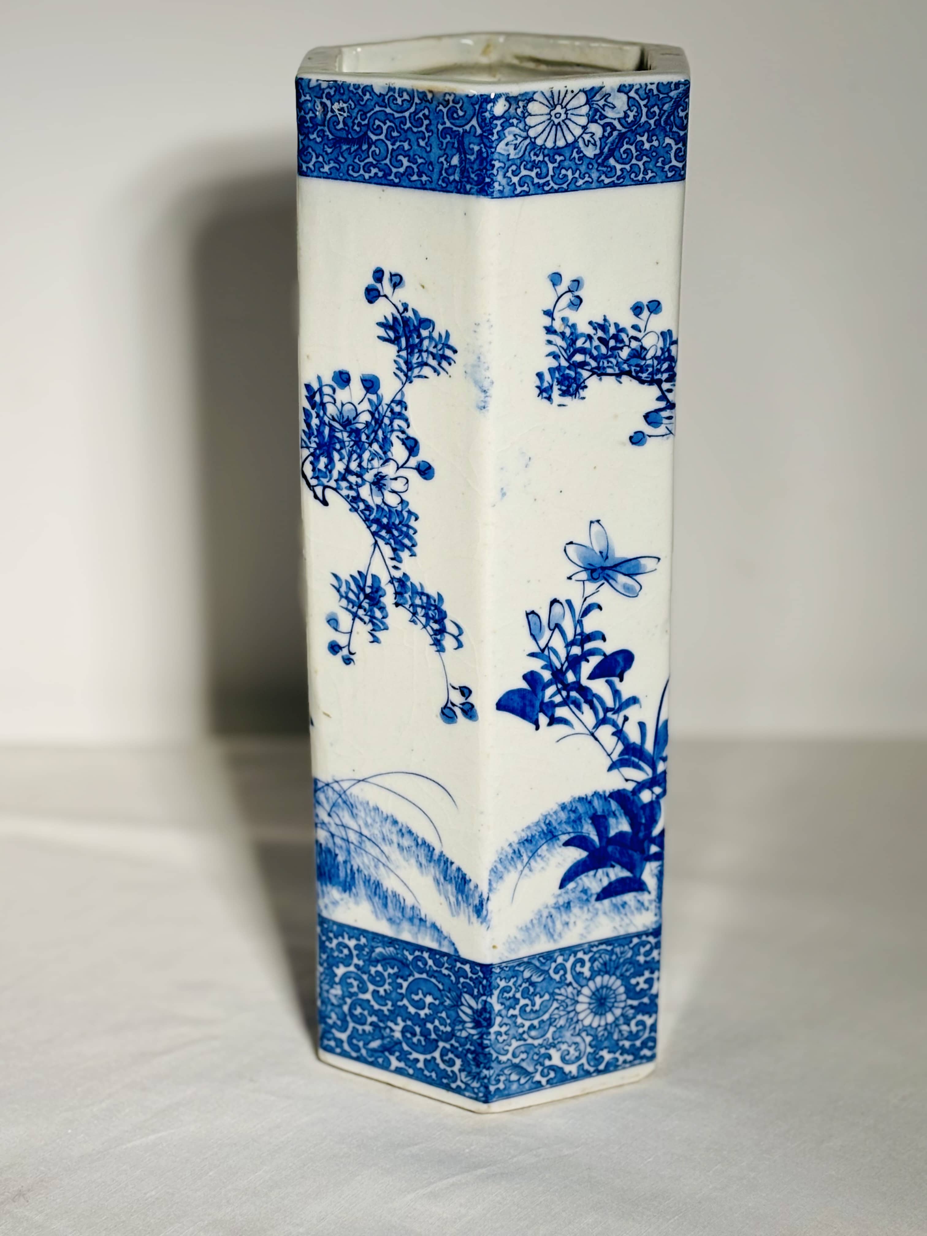 Vase hexagonal en porcelaine Bleu et Blanc - Japon - Epoque Meiji - XIXe siècle
