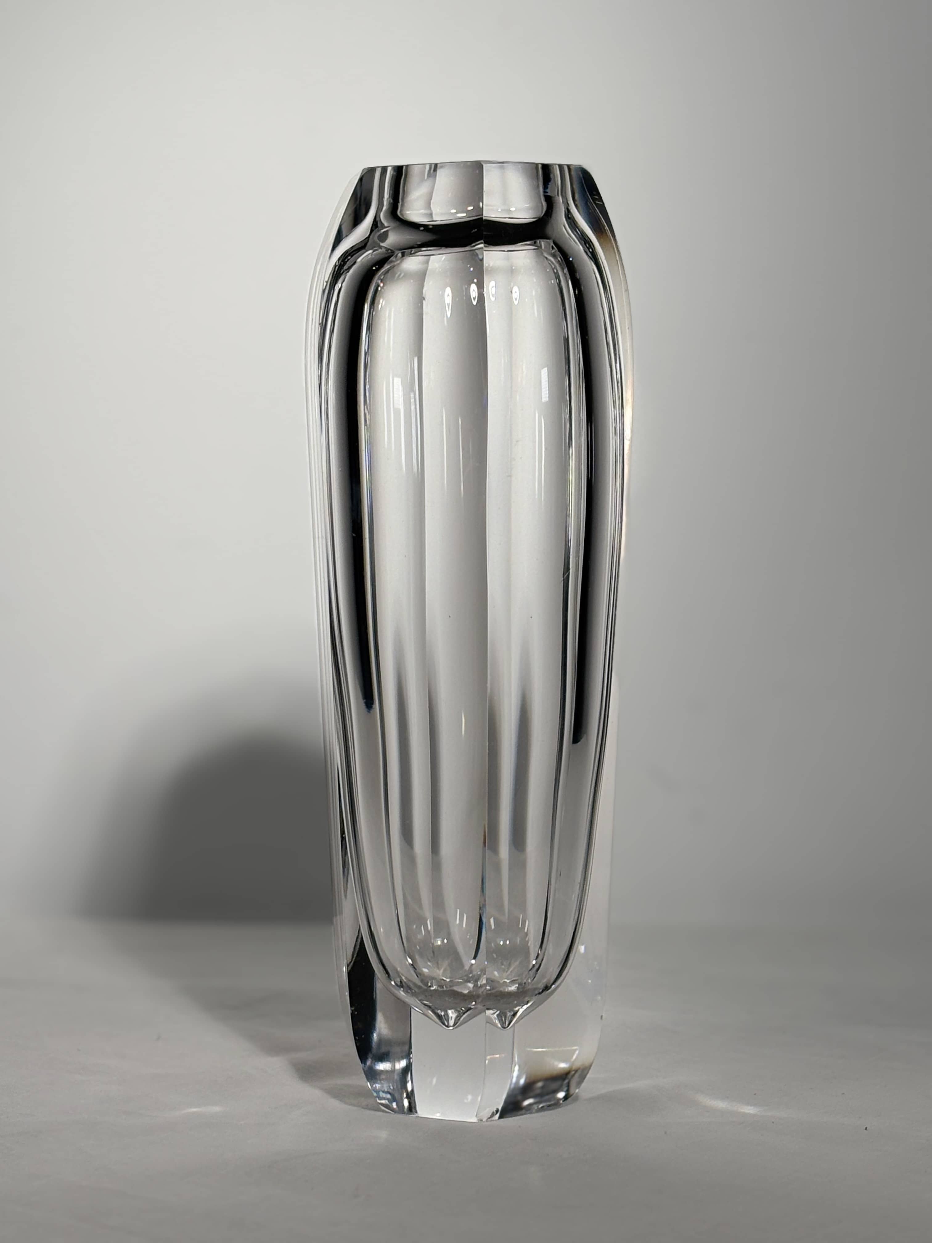 Vase monumental en cristal soufflé taillé - Kosta Boda - Suède, 1947