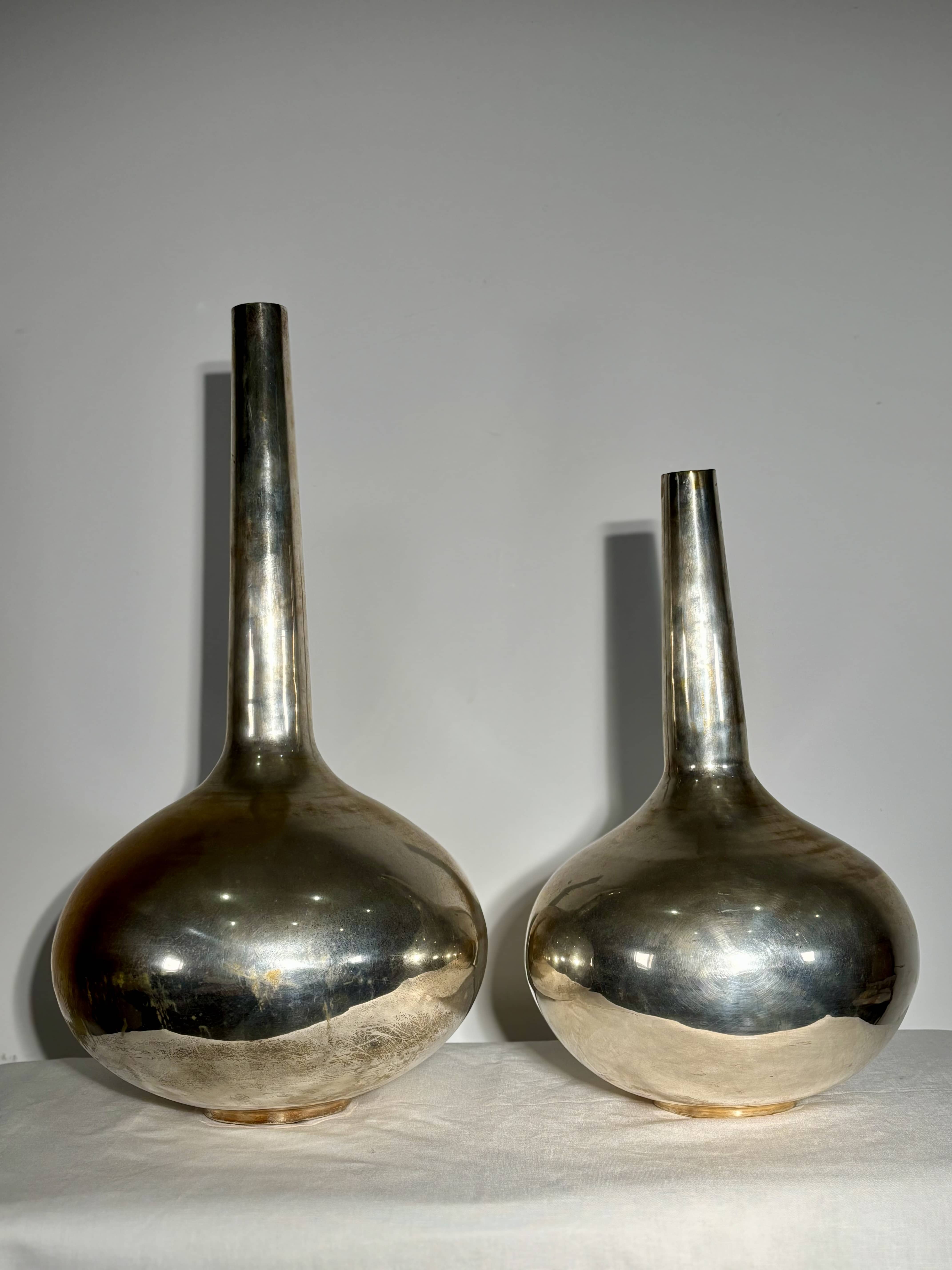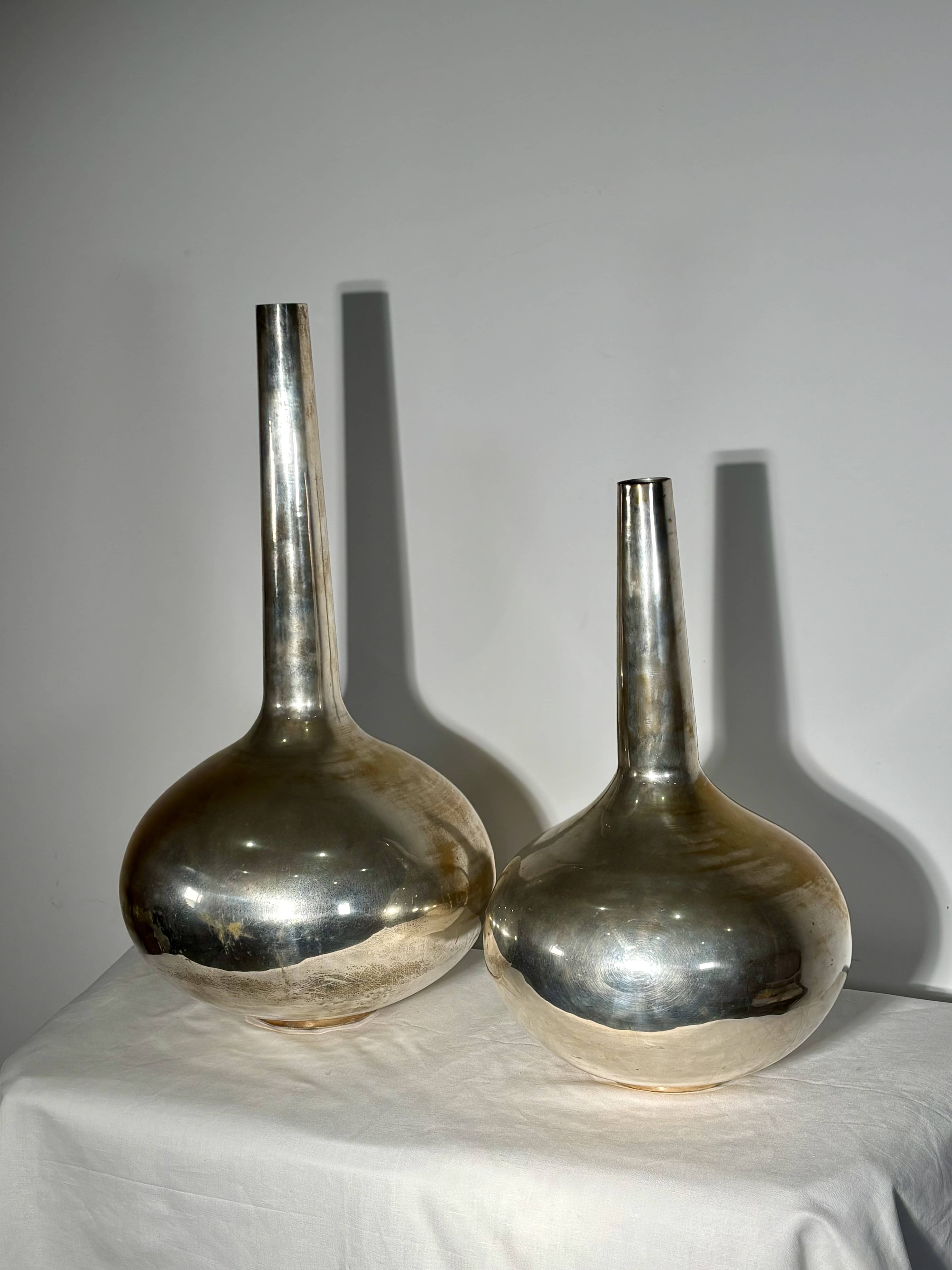 Importantes paires de vases "bouteilles" en métal argenté - Italie XXe s - Estampillées